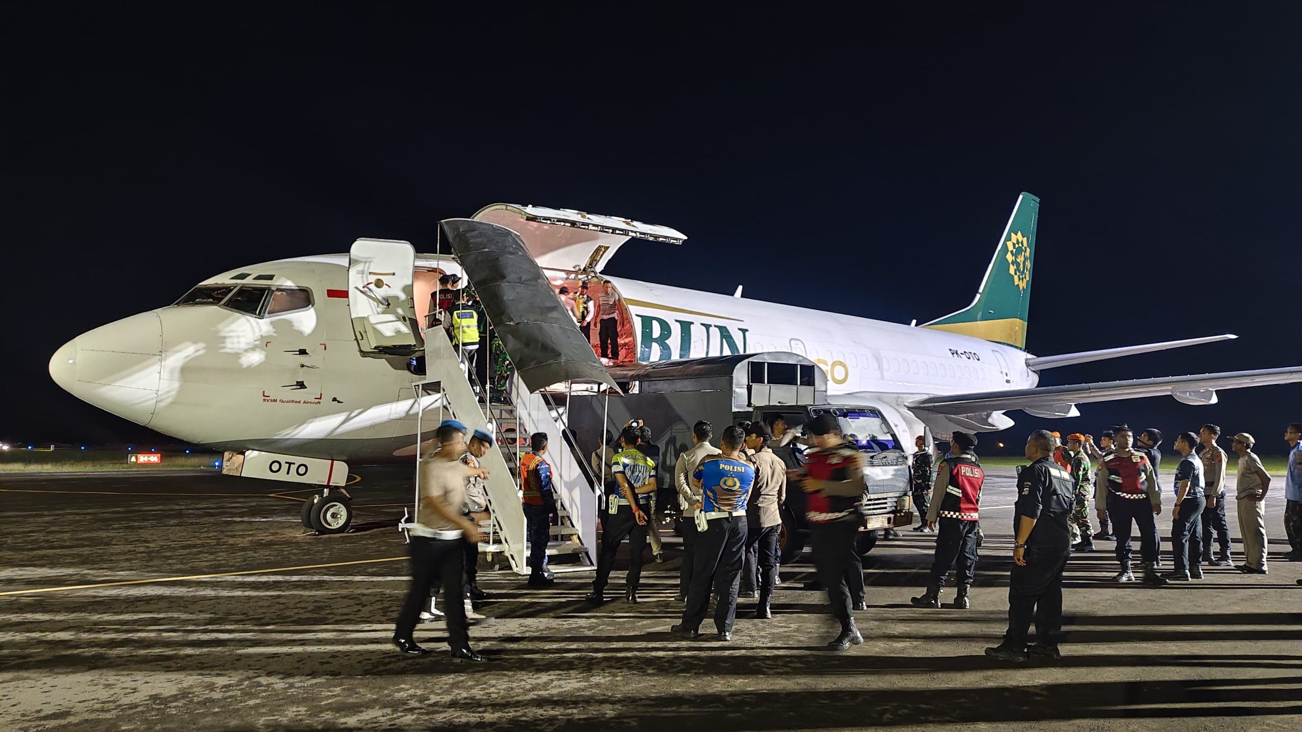 Bantuan ini diterbangkan menggunakan pesawat kargo Boeing 737-300F milik Rinbun Air Cargo. Penerbangan dipimpin Kapten Andi Hendarawan bersama FO Yusu, dua kru pilot, engineer Jamal, serta petugas teknis (FOO) Riski. Pesawat lepas landas dari Bandara Soekarno-Hatta Cengkareng pukul 16.46 WIB dan mendarat mulus di Bandara Malikussaleh pada pukul 19.13 WIB.