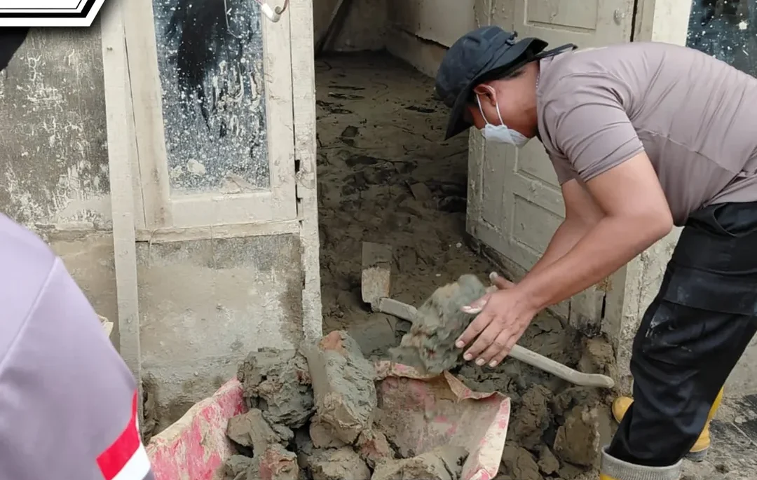 Di lapangan, suasana gotong royong tampak terjalin antara aparat dan warga. Lumpur tebal yang menutupi lantai rumah dibersihkan secara manual menggunakan sekop dan alat seadanya. Sebagian personel lainnya membantu mengevakuasi perabotan yang masih bisa diselamatkan.