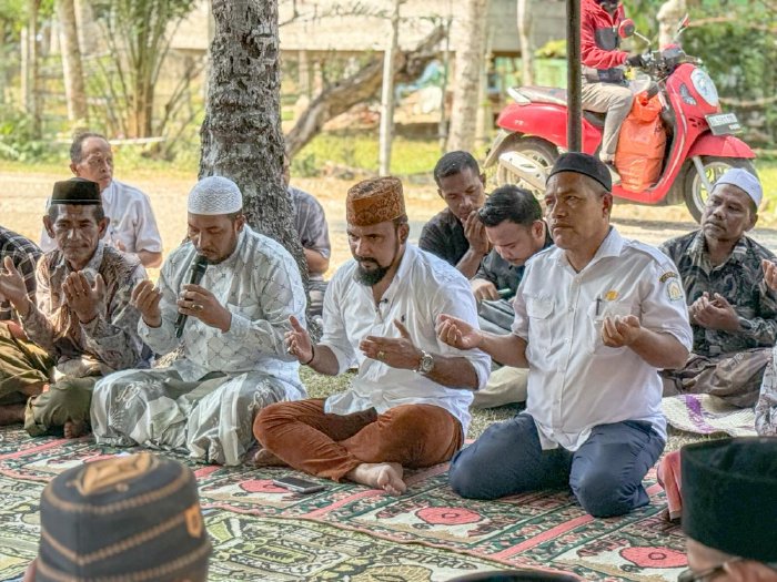 Bupati bersama jajaran Pemerintah Kabupaten Aceh Timur mengikuti tahlil bersama majelis samadiah rumah duka empat pelajar yang meninggal dunia akibat tenggelam di kawasan Kuala Peudawa, Rabu, 25 Maret 2026. (Ist)