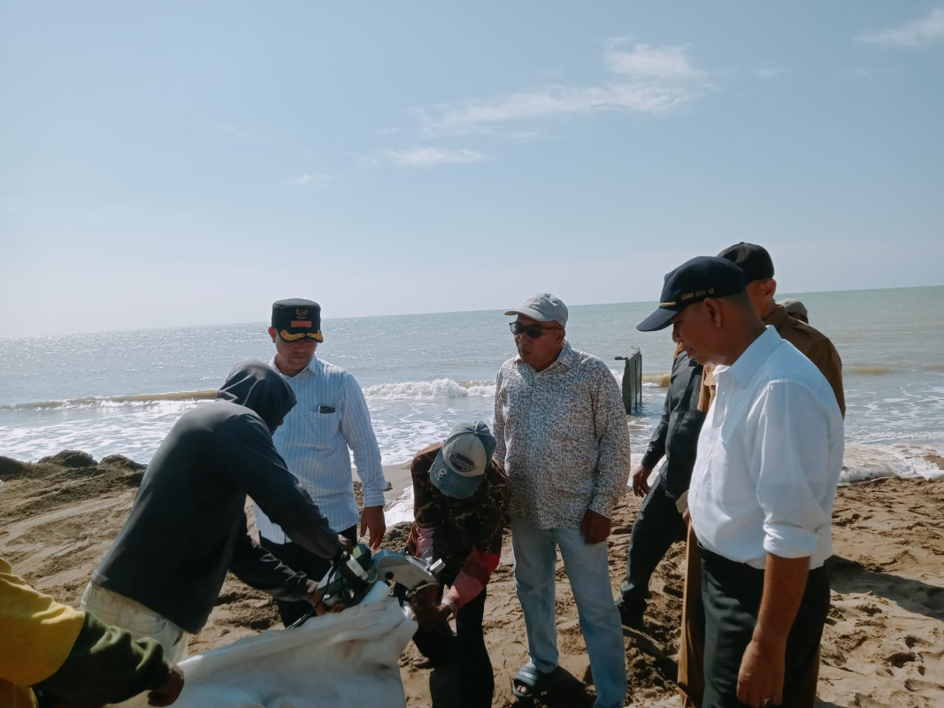Dalam kunjungan tersebut, Ayah Wa meninjau langsung sejumlah titik saluran irigasi tersier serta progres pemasangan geobag di kawasan pesisir Gampong Lhok Pu’uk, sebagai langkah konkret penanggulangan abrasi laut yang kian mengkhawatirkan.