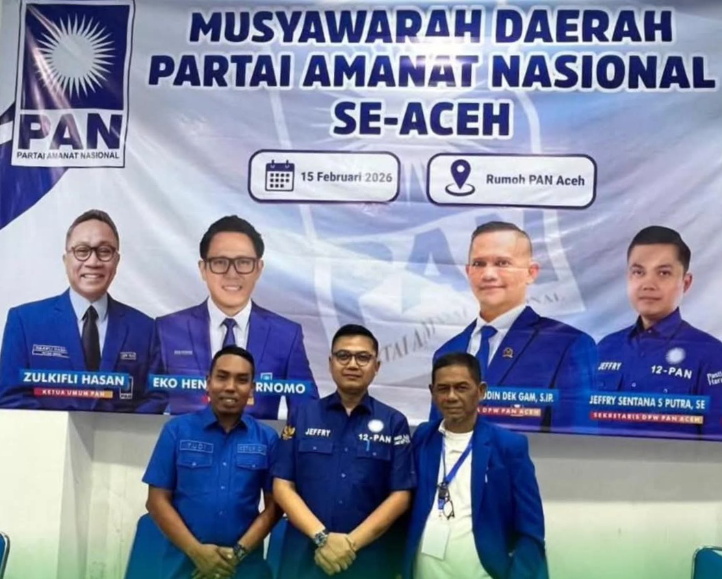 Penunjukan tersebut diumumkan dalam Musyawarah Daerah (Musda) serentak yang dipusatkan di Kantor DPW PAN Aceh, Banda Aceh, Minggu, 15 Februari 2026.Kegiatan itu menjadi bagian dari agenda konsolidasi organisasi menjelang tahapan politik 2029.