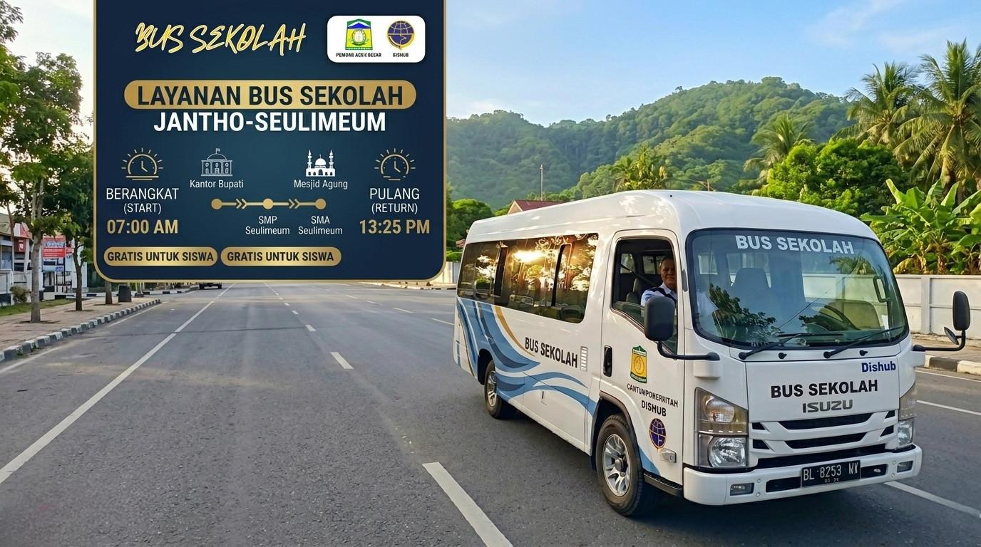 Bus sekolah akan beroperasi setiap hari sekolah, dengan keberangkatan dari Kantor Bupati Aceh Besar pukul 07.00 WIB. Rute perjalanan mencakup halte Masjid Agung Al-Munawwarah, halte SMP Seulimeum, hingga halte SMA Seulimeum, dan kembali untuk kepulangan mulai pukul 13.25 WIB.