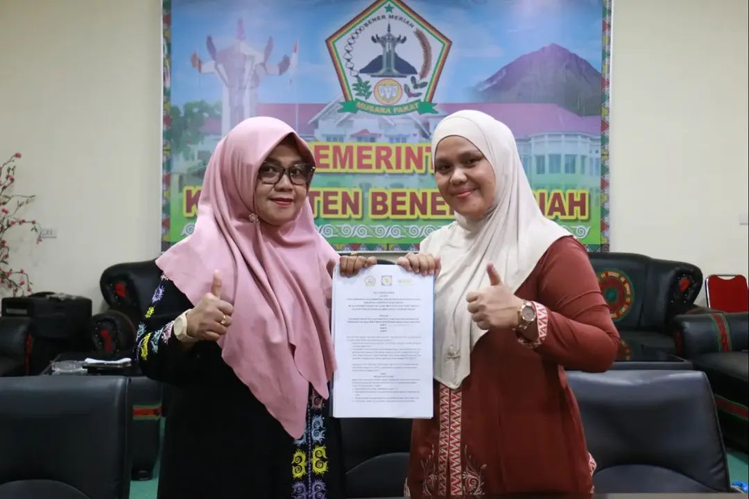 Penandatanganan MoU tersebut dilakukan oleh DP3AKB yang diwakili Sekretaris Widya Astuti, S.Ag., M.Pd., bersama Ketua MPD Bener Meriah, Rahmiati Tagore Putri, S.Psi., M.Psi.