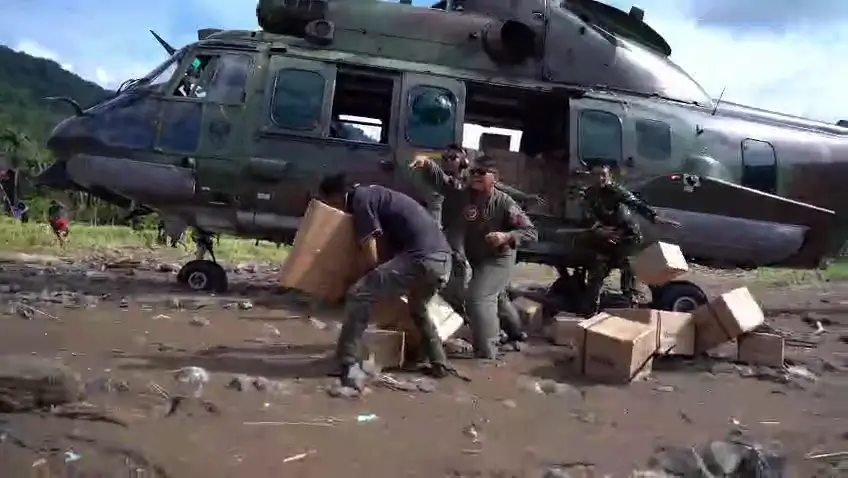 Heli Caracal pertama berhasil mengangkut bantuan logistik ke Takengon, Aceh Tengah. Data sementara yang berhasil dihimpun, logistik yang dibawa yakni eprokal 110 dus, mie instan 170 dus dan naraga 100 dus, makanan siap saji  212 dus dan biskuit khong guan 10 dus.