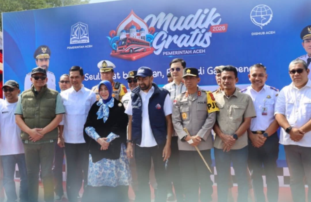 Byklik.com | Banda Aceh – Unsur Forum Koordinasi Pimpinan Daerah (Forkopimda) Aceh menghadiri sekaligus melepas peserta Program Mudik Gratis Pemerintah Aceh Tahun 2026 yang berlangsung di Depo Angkutan Massal Trans Koetaradja di Kompleks Terminal Tipe A Batoh, Banda Aceh, Minggu, 15 Maret 2026.