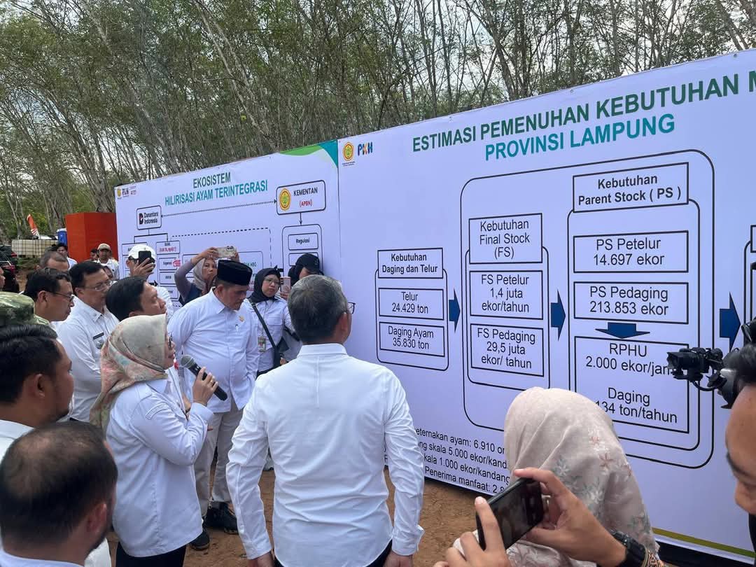 Ia menjelaskan, pengembangan hilirisasi ayam terintegrasi di Lampung diproyeksikan mampu memenuhi kebutuhan parent stock (PS) ayam petelur sebanyak 14.697 ekor dan PS ayam pedaging hingga 213.853 ekor. Selain itu, fasilitas Rumah Potong Hewan Unggas (RPHU) yang dibangun memiliki kapasitas pemotongan sekitar 2.000 ekor per jam, atau setara dengan produksi daging mencapai 6.134 ton per tahun.