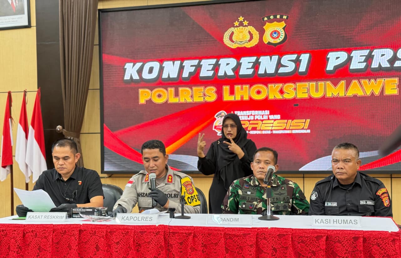Konferensi pers tersebut turut dihadiri Komandan Kodim 0103/Aceh Utara Letkol Arh Jamal Dani Arifin. Ia menegaskan tidak ada keterlibatan anggota TNI dalam perkara tersebut.