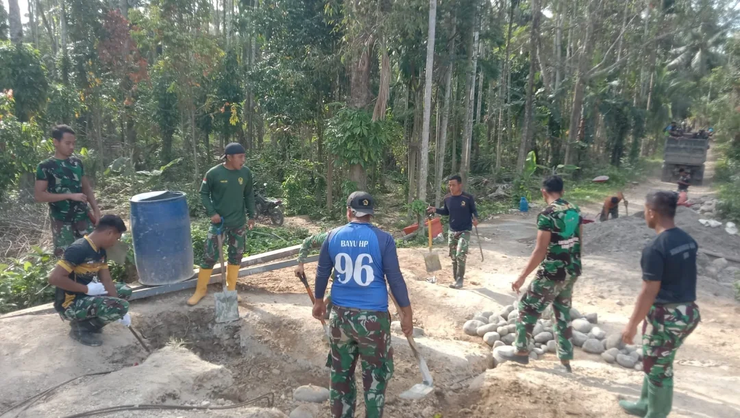 Pembangunan jembatan dilaksanakan oleh 25 personel Batalyon Zeni Tempur 5/Arati Bhaya Wighina di bawah pimpinan Letda Czi Desto, serta didukung 21 personel Batalyon Zeni Tempur 17/Ananta Dharma yang dipimpin Letda Czi Haris. Sinergi antarsatuan Zeni TNI AD ini menjadi bagian dari percepatan pembangunan infrastruktur di wilayah pedesaan.