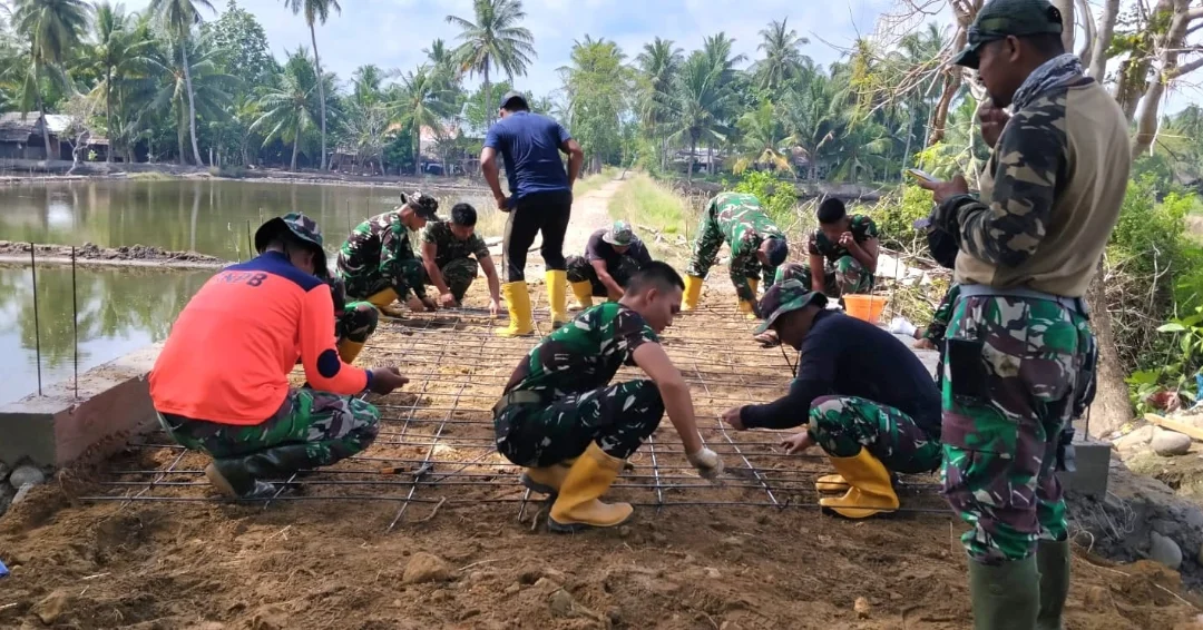 Di bawah komando Letda Czi Amir, sebanyak 15 prajurit Yonzipur 17/AD bersama Serka Joko Susilo dari Koramil 03/Dewantara bekerja tanpa kenal lelah mempercepat penyelesaian konstruksi. Hingga saat ini, progres pembangunan telah mencapai 80 persen.