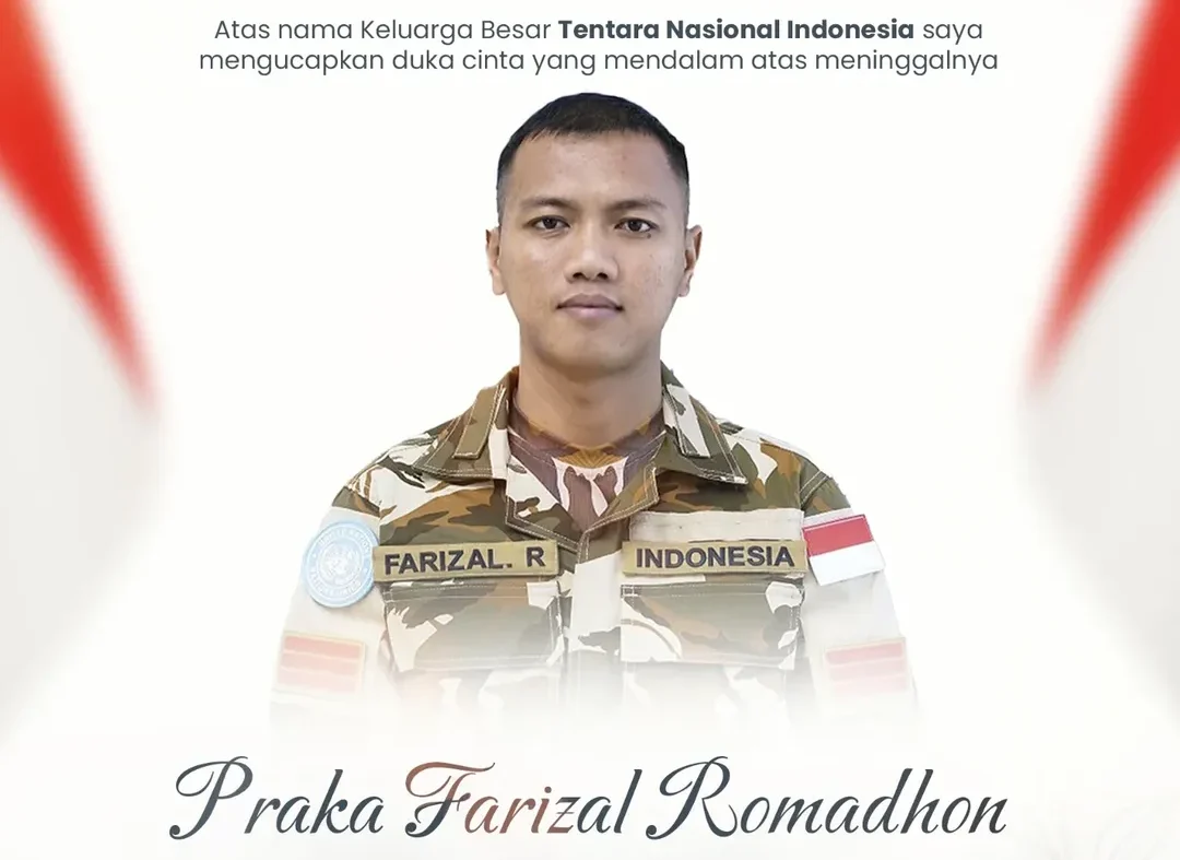 “TNI berduka cita yang sedalam-dalamnya atas gugurnya Praka Farizal Romadhon dalam menjalankan tugas mulia sebagai pasukan perdamaian dunia. Kami memastikan proses pemulangan jenazah dilakukan sebaik mungkin,” ujar Panglima TNI Jenderal TNI Agus Subiyanto.