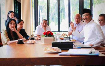 Sebelum acara pembukaan, Kadiskominsa Aceh Dr. Edi Yandra tampak berbincang dengan Menkomdigi Meutya Hafid di sela-sela kegiatan, membahas sejumlah isu terkait penguatan peran media dan komunikasi publik.