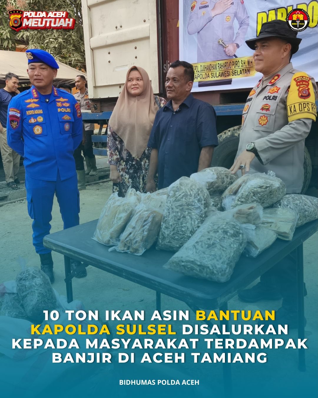 Ia menjelaskan, bantuan tersebut merupakan bentuk solidaritas dan kepedulian Kapolda Sulawesi Selatan terhadap warga Aceh Tamiang yang terdampak banjir. Ikan asin dipilih sebagai bahan pangan yang tahan lama dan mudah didistribusikan ke wilayah terdampak.