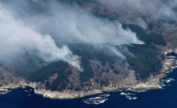 Api dilaporkan menyebar ke arah permukiman warga di Otsuchi, Prefektur Iwate, wilayah yang sebelumnya terdampak parah gempa bumi dan tsunami pada 2011.