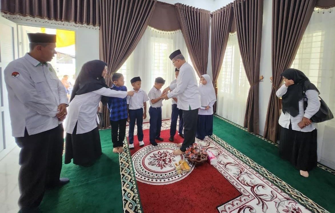 Suasana keakraban tampak mewarnai kegiatan tersebut, di mana para tamu yang hadir tidak hanya bersilaturahmi, tetapi juga ikut menyaksikan langsung penyerahan santunan kepada anak-anak yatim.