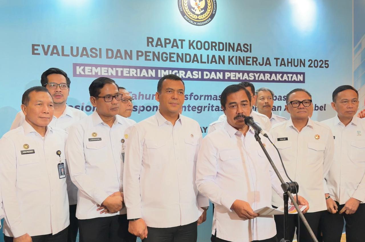 Menteri Agus Andrianto saat penutupan kegiatan Rapat Koordinasi Evaluasi dan Pengendalian Kinerja Tahun 2025, Selasa, 16 Desember 2025. (Foto: Dok. Kemenimipas)