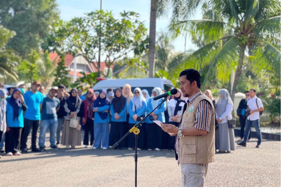 Asisten Pemerintahan, Keistimewaan Aceh dan Kesejahteraan Rakyat Sekda Aceh, Drs. Syakir, M.Si, didampingi para Kepala SKPA/Biro terkait, menyampaikan sambutan Gubernur Aceh serta melepas Tenaga Cadangan Kesehatan (TCK) ke Daerah Terdampak Bencana Hidrometerologi Aceh, di Meuligoe Gubernur Aceh, Banda Aceh, Minggu, 1 Februari 2026. (Ist)