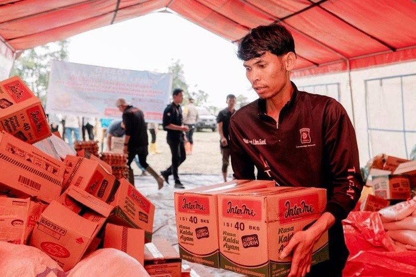 Bantuan logistik dari Kemensos berupa makanan siap saji, beras dan kebutuhan dasar lainnya jangkau daerah terisolasi di Aceh Tamiang, Rabu (3/12/2025). [Foto: Kemensos]