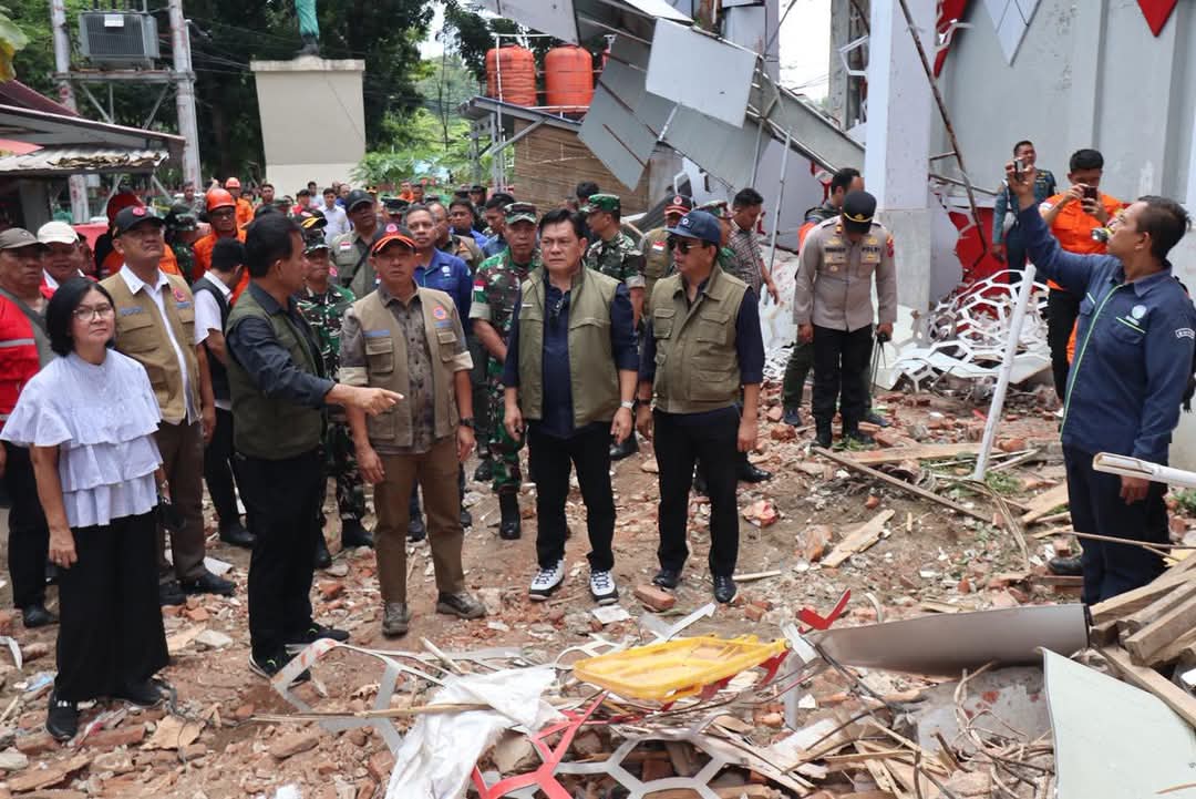 Peninjauan difokuskan pada kerusakan bangunan di kawasan Gedung KONI-Hall B dan permukiman warga, guna memastikan langkah-langkah penanganan darurat berjalan optimal.