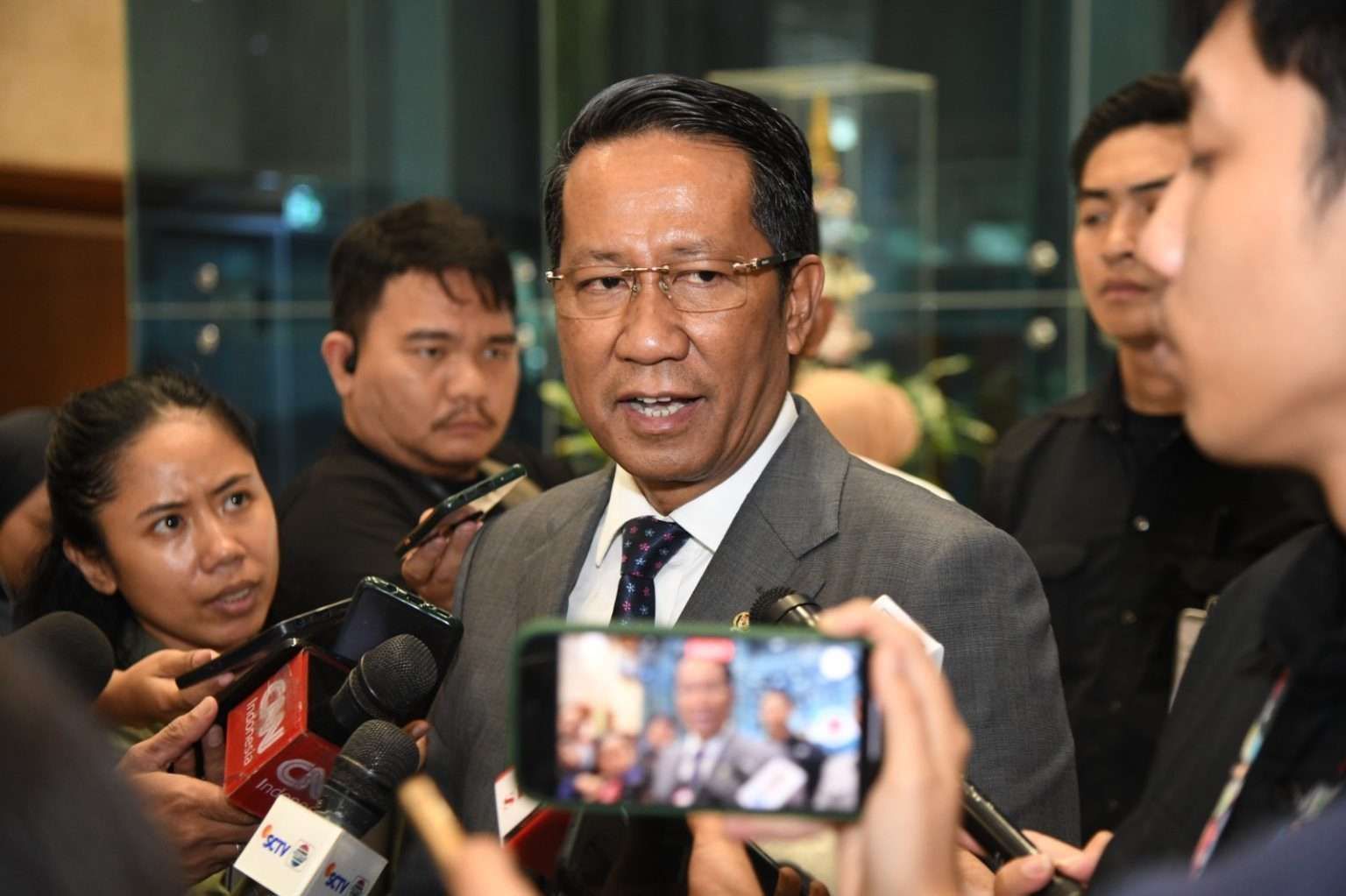 Menteri Hukum Supratman Andi Agtas saat wawancara di Kompleks Parlemen, Senayan, Jakarta [Foto: Kemenkum]