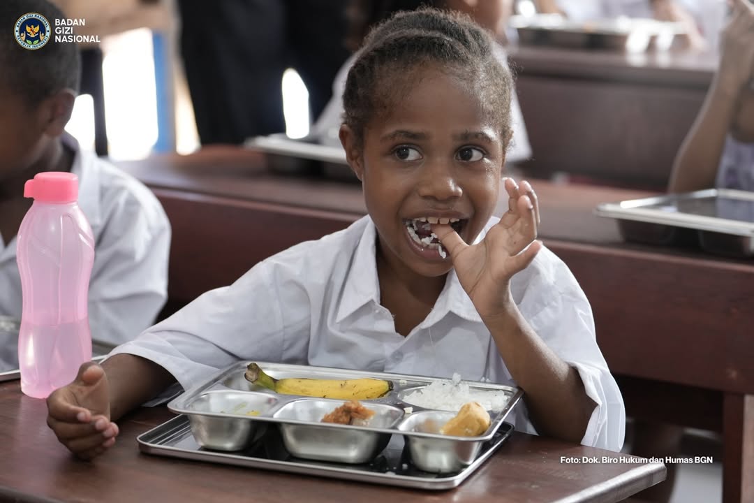 Salah satu murid SD Negeri 85 Wasay, di Kecamatan Manokwari Selatan, Kabupaten Manokwari, Provinsi Papua Barat saat sedang menikmati menu MBG. [Foto: BGN]