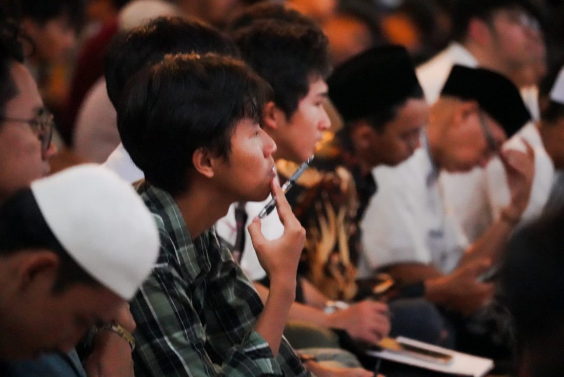Beberapa Mahasiswa sedang menyimak sekaligus mencatat materi tausiyah Menag. [Foto: Kemenag]