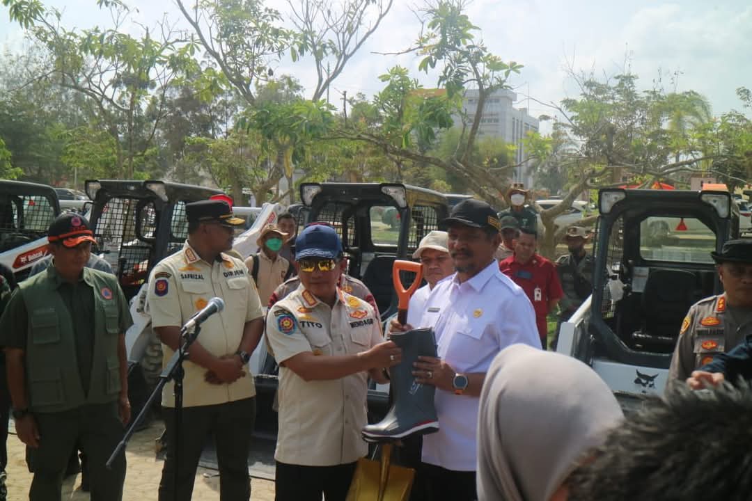 Didampingi Wakil Gubernur Aceh, Fadhullah, Mendagri menyerahkan sejumlah bantuan guna mendukung percepatan pemulihan pascabencana. Bantuan tersebut meliputi sembilan unit skid loader, 5.000 pasang sepatu bot, 3.000 unit gerobak dorong, 1.000 unit sekop, serta 1.000 unit cangkul.