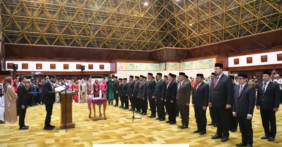 Byklik.com | Banda Aceh – Gubernur Aceh, Muzakir Manaf yang akrab disapa Mualem, resmi melantik 25 pejabat pimpinan tinggi pratama (Eselon II) di lingkungan Pemerintah Aceh. Pelantikan berlangsung di Anjong Mon Mata, Banda Aceh, Jumat, 27 Februari 2026 malam.