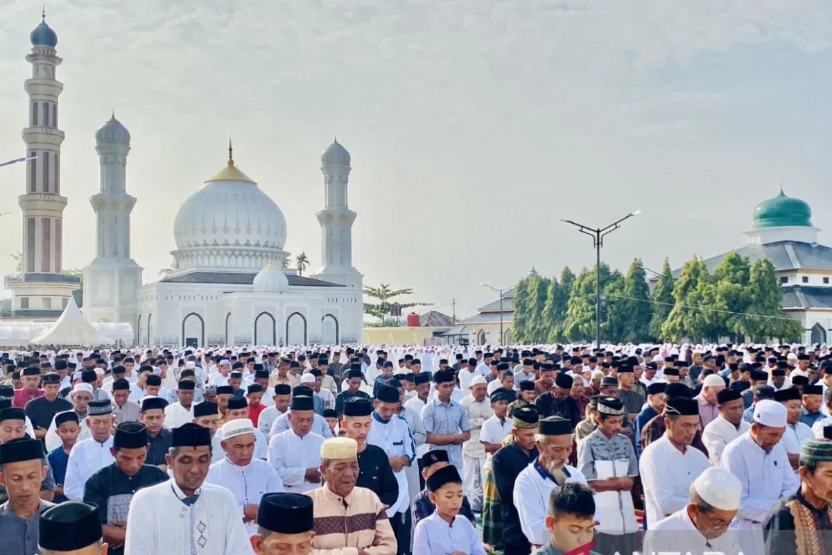 Byklik | Suka Makmue – Ribuan pengikut Thariqat Syattariyah di Kabupaten Nagan Raya, Aceh, sudah merayakan hari raya Idulfitri 1446 Hijriah pada hari Sabtu, 29 Maret 2025. Para jemaah menggalar salat Id di Kompleks Masjid Jamik Abu Habib Muda Seunagan di Gampong Peuleukung, Kecamatan Seunagan Timur.