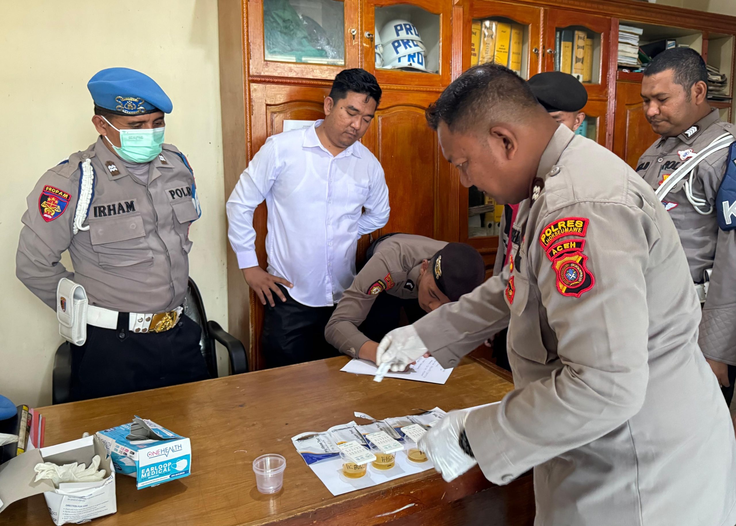 Pemeriksaan dilakukan oleh tim gabungan dari Seksi Propam dan Seksi Kedokteran Kesehatan Polres Lhokseumawe, dengan menggunakan alat Rapid Diagnostic Test merek I Test yang dapat mendeteksi enam parameter zat narkotika, yakni THC, MET, AMP, BZO, COC, dan MOP.