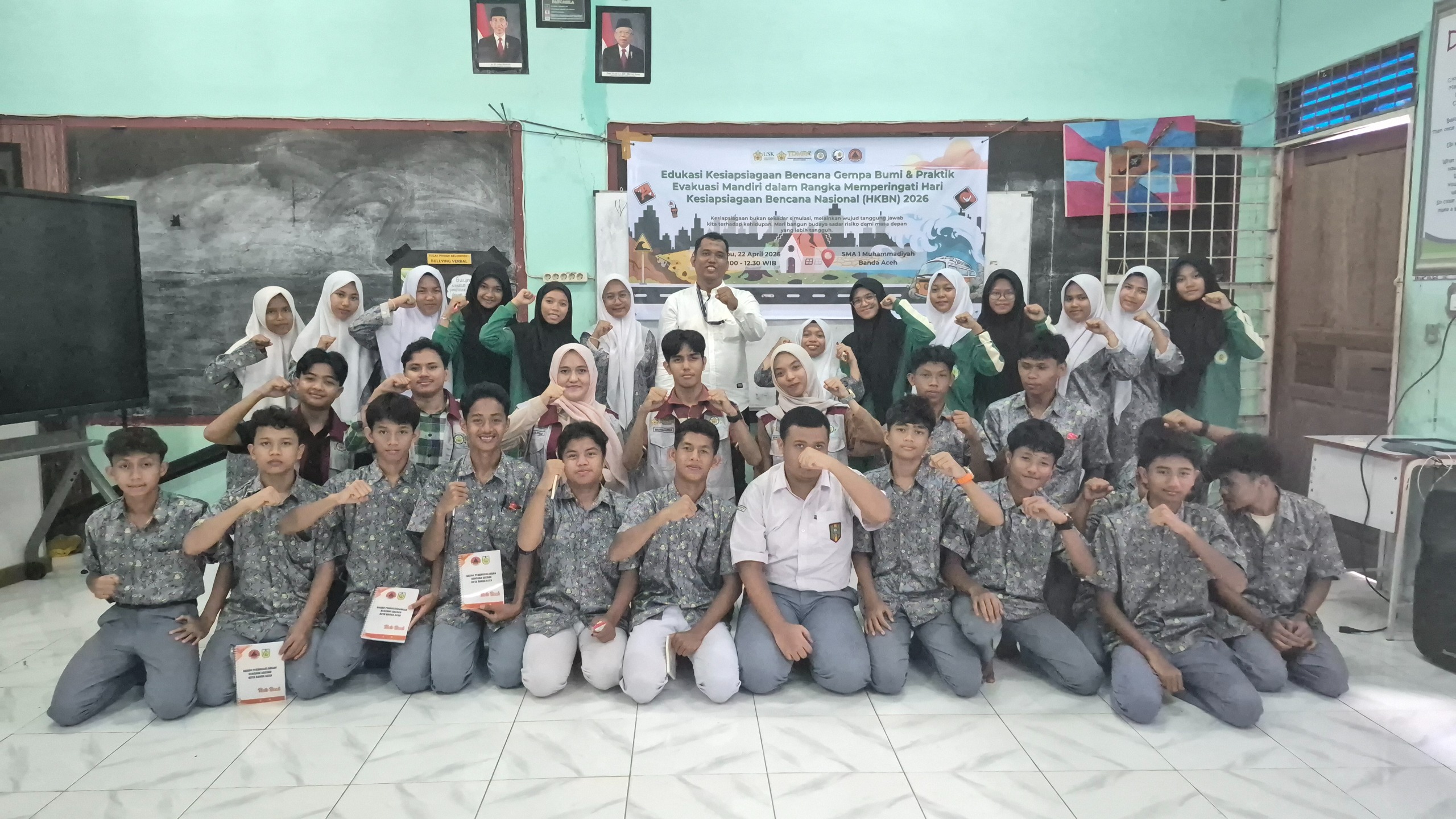 Byklik | Banda Aceh—Universitas Syiah Kuala (USK) melalui kolaborasi Program Doktor dan Magister Ilmu Kebencanaan menggelar edukasi kebencanaan dan simulasi evakuasi mandiri bagi siswa SMA Muhammadiyah 1 Banda Aceh dalam rangka menyambut Hari Kesiapsiagaan Bencana Nasional (HKBN) 2026.