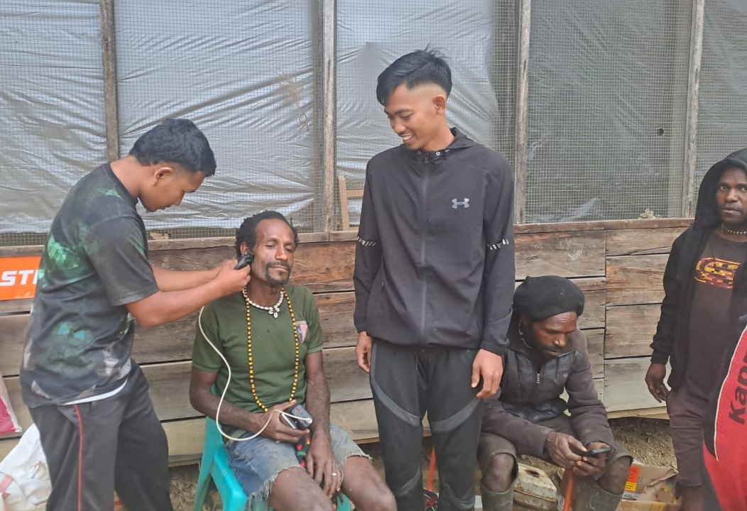“Warga dengan sabar menunggu giliran untuk dicukur. Sebelumnya, mereka harus berjalan kaki sejauh enam kilometer ke Pogapa, ibu kota Distrik Homeyo, hanya untuk memotong rambut,” ujar Kapten Sugeng, Selasa, 4 November 2025.