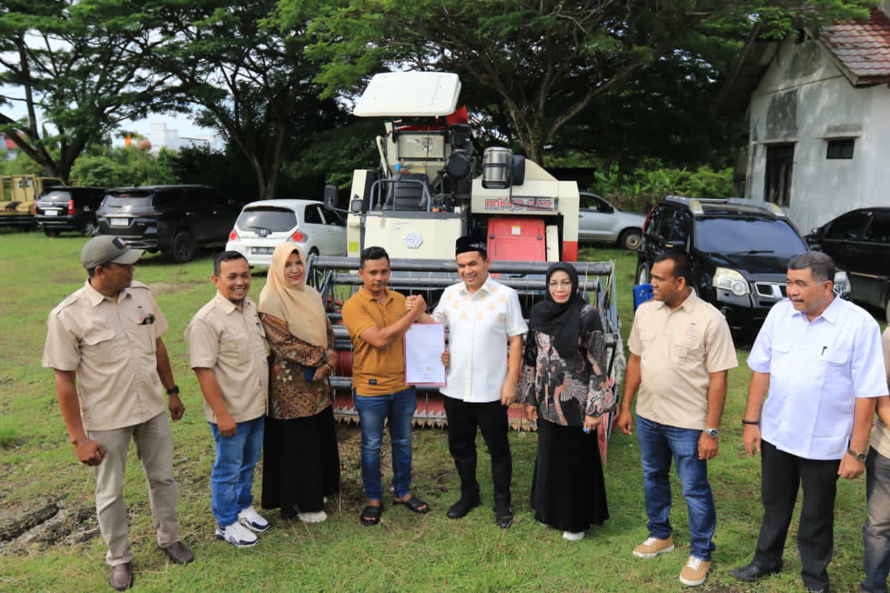 Sementara itu, satu unit combine harvester diserahkan kepada Kelompok Tani Maju Beumeuhase di Gampong Jeulikat, Kecamatan Blang Mangat.