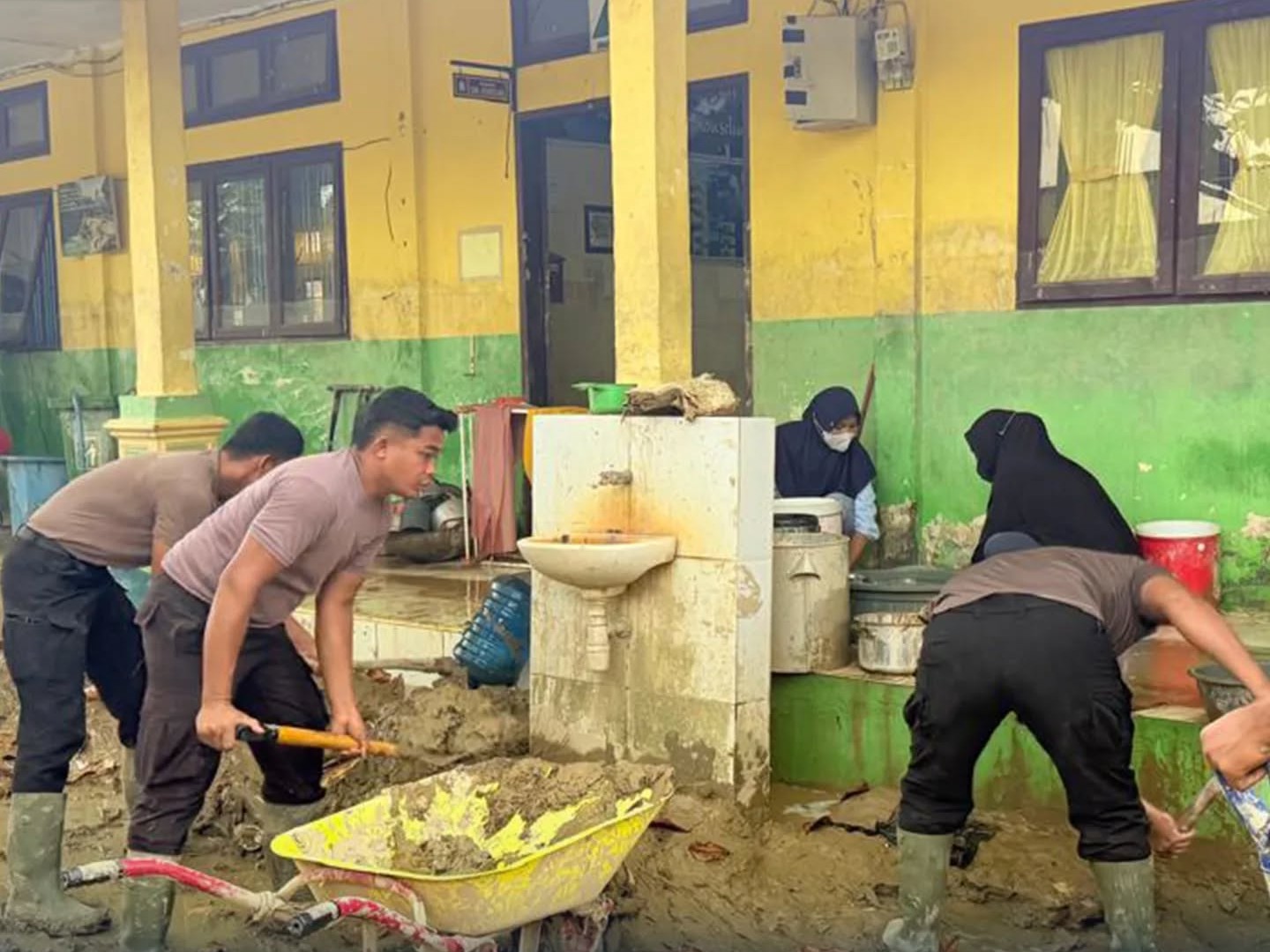 Melalui personel Satgas Brimob Aceh Tamiang, pembersihan dilakukan secara berkelanjutan selama hampir sepekan, meliputi ruang kelas, halaman sekolah, selokan, serta sarana dan prasarana pendukung lainnya. Upaya tersebut dilakukan agar lingkungan sekolah kembali bersih, sehat, dan aman sehingga kegiatan belajar mengajar dapat segera berjalan normal.