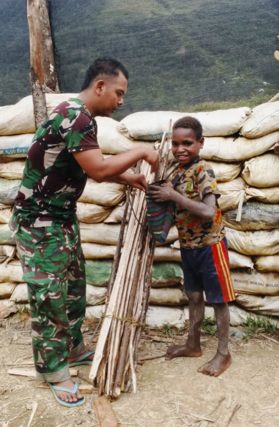 Menurutnya, bukan hanya kayu bakar yang kerap dibawa warga ke pos. Sayuran, umbi-umbian, buah-buahan, hingga hasil kebun lainnya juga sesekali diberikan sebagai tanda terima kasih. Pertukaran sederhana itu menjadi jembatan emosional antara aparat dan warga kampung.