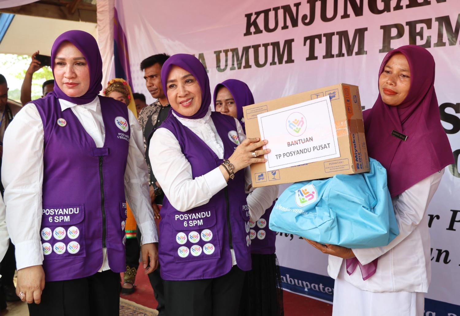 Selain penyerahan penghargaan, Ketua Umum Posyandu juga menyalurkan bantuan kepada masyarakat terdampak banjir di wilayah pedalaman Aceh Utara. Bantuan tersebut meliputi perlengkapan dapur untuk penghuni hunian sementara (huntara), perlengkapan sekolah, perlengkapan bagi ibu hamil dan melahirkan, serta santunan jaminan kematian bagi kader Posyandu.