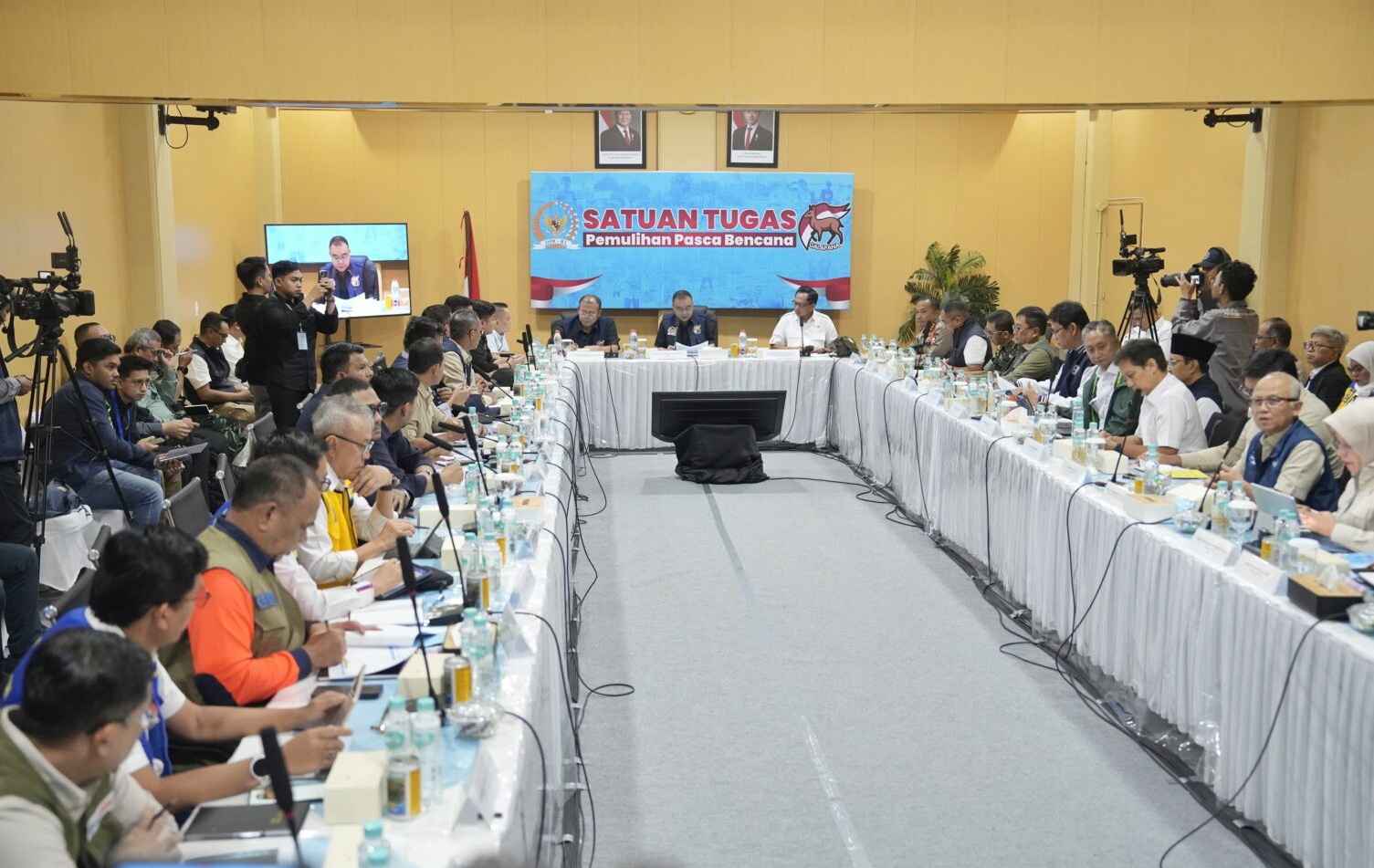 Rapat koordinasi tersebut merupakan tindak lanjut dari pertemuan sebelumnya, dengan agenda utama mendengarkan laporan perkembangan serta memastikan penanganan pascabencana berjalan lebih terfokus, terkoordinasi, dan berskala nasional.