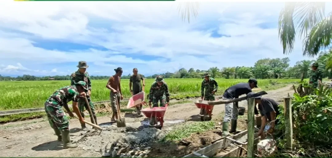 Byklik.com | Meulaboh – Di bawah terik matahari yang menyengat, tekad dan semangat juang personel Satgas TMMD Reguler ke-127 Kodim 0105/Aceh Barat bersama masyarakat tetap membara dalam pengerjaan talud penahan timbunan di Desa Pasi Aceh, Kecamatan Woyla, Jumat, 27 Februari 2026.