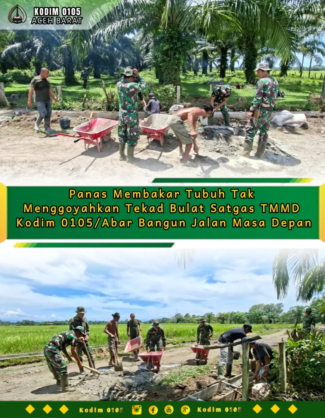 Komandan Satgas TMMD Reguler ke-127 Kodim 0105/Aceh Barat, S. Kembaren, menegaskan panas matahari bukan halangan untuk menuntaskan pekerjaan sesuai target.