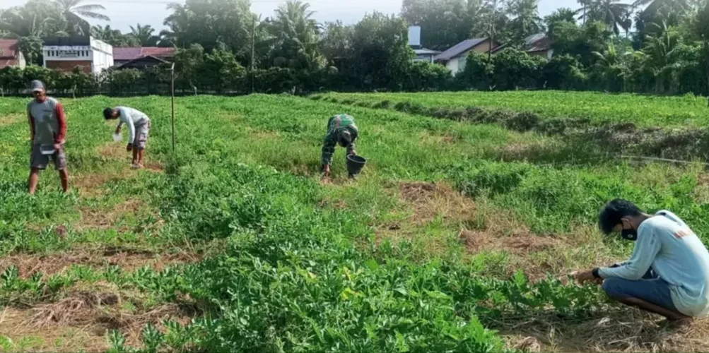 Melalui kegiatan TNI Manunggal Membangun Desa (TMMD), prajurit turun langsung ke lahan pertanian bersama masyarakat. Di atas lahan seluas lima hektar, Satgas TMMD bersama warga menanam jagung, semangka, dan cabai merah sebagai langkah konkret memperkuat kedaulatan pangan desa.