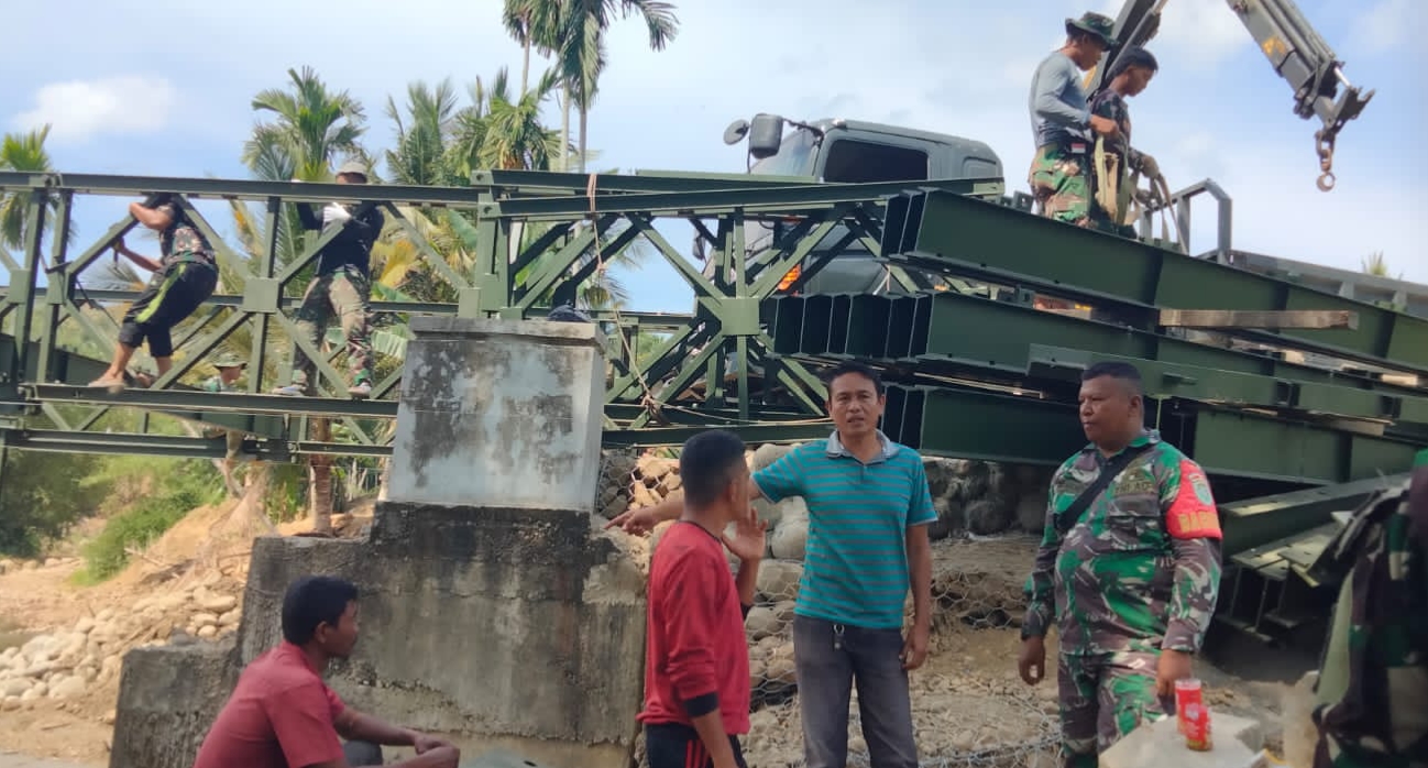 TNI Bangun Jembatan Bailey, Akses Warga Teupin Rusep Pulih