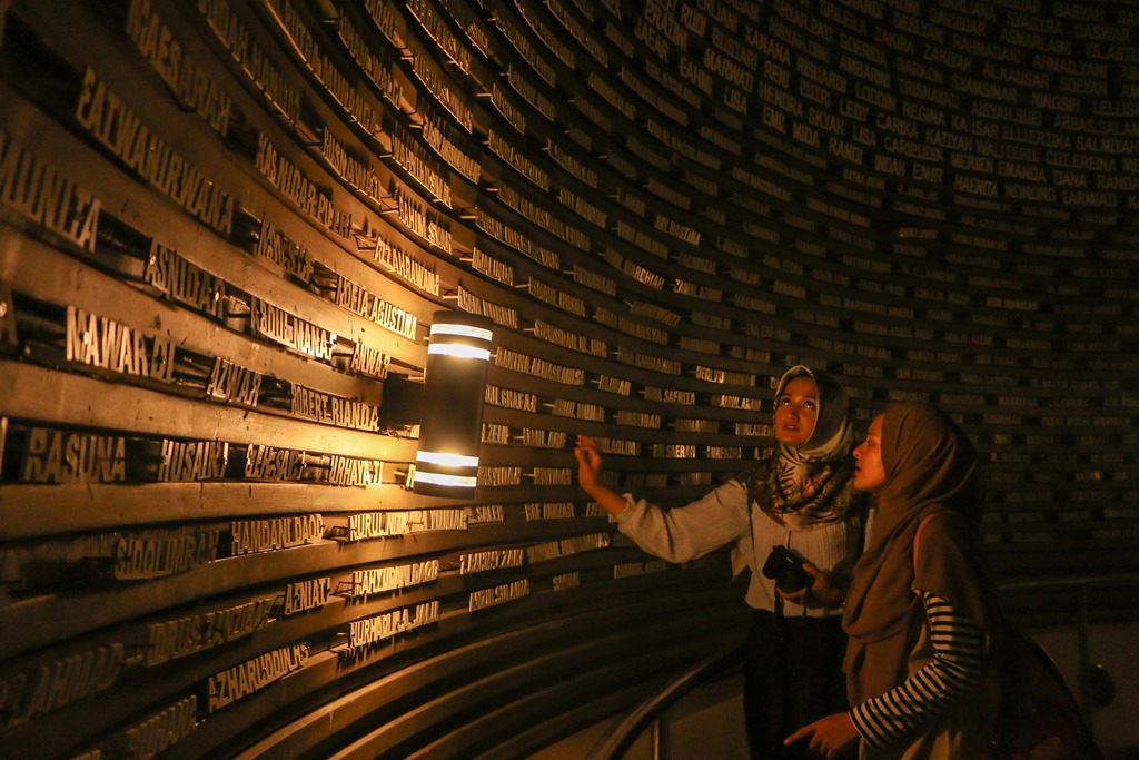 Pengunjung melihat nama-nama korban tsunami Aceh diMuseum Tsuanmi di Banda Aceh. [Foto: Dok/Inca University]