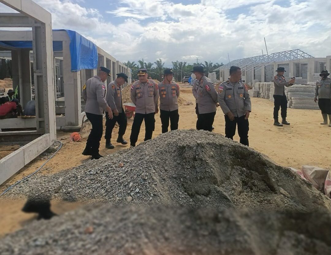 Wakapolda Aceh Ari Wahyu Widodo meninjau langsung percepatan pembangunan hunian tetap (huntap) bagi korban bencana hidrometeorologi di Kabupaten Aceh Tamiang, Rabu, 12 Februari 2026. [Foto: Bidhumas Polda Aceh]
