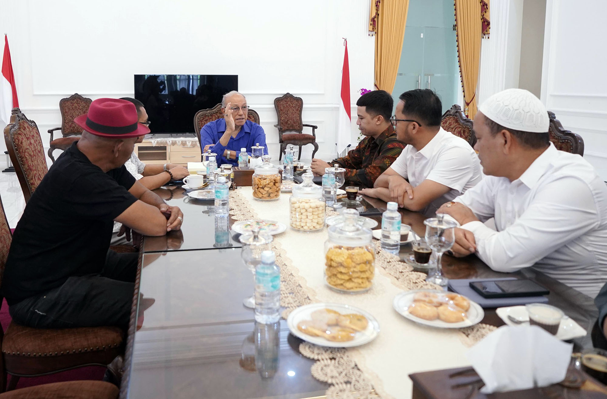Wali Nanggroe Aceh Tgk Malik Mahmud Al Haythar memberikan arahan kepada manajemen PT Pembangunan Aceh (PEMA) saat menerima kunjungan jajaran PEMA di Meuligoe Wali Nanggroe, Banda Aceh, Rabu, 2 Juli 2025. Foto: Humas Wali Nanggroe