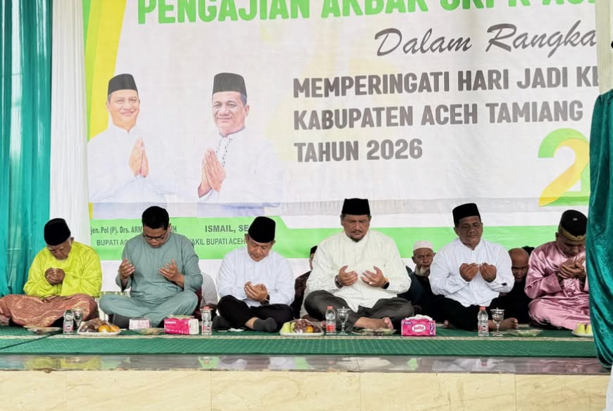 Byklik.com | Kuala Simpang – Pemerintah Kabupaten Aceh Tamiang menggelar zikir akbar dan pengajian bersama aparatur sipil negara (ASN) di Tribun Kantor Bupati, Kamis, 9 April 2026.